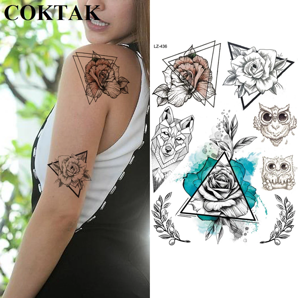 / Watercolor Geometric Tattoos Flower : Rosa Geometric Purple Floral Rose Temporary Tattoo Mybodiart - The process of tattooing in the style of watercolor, geometric heart.